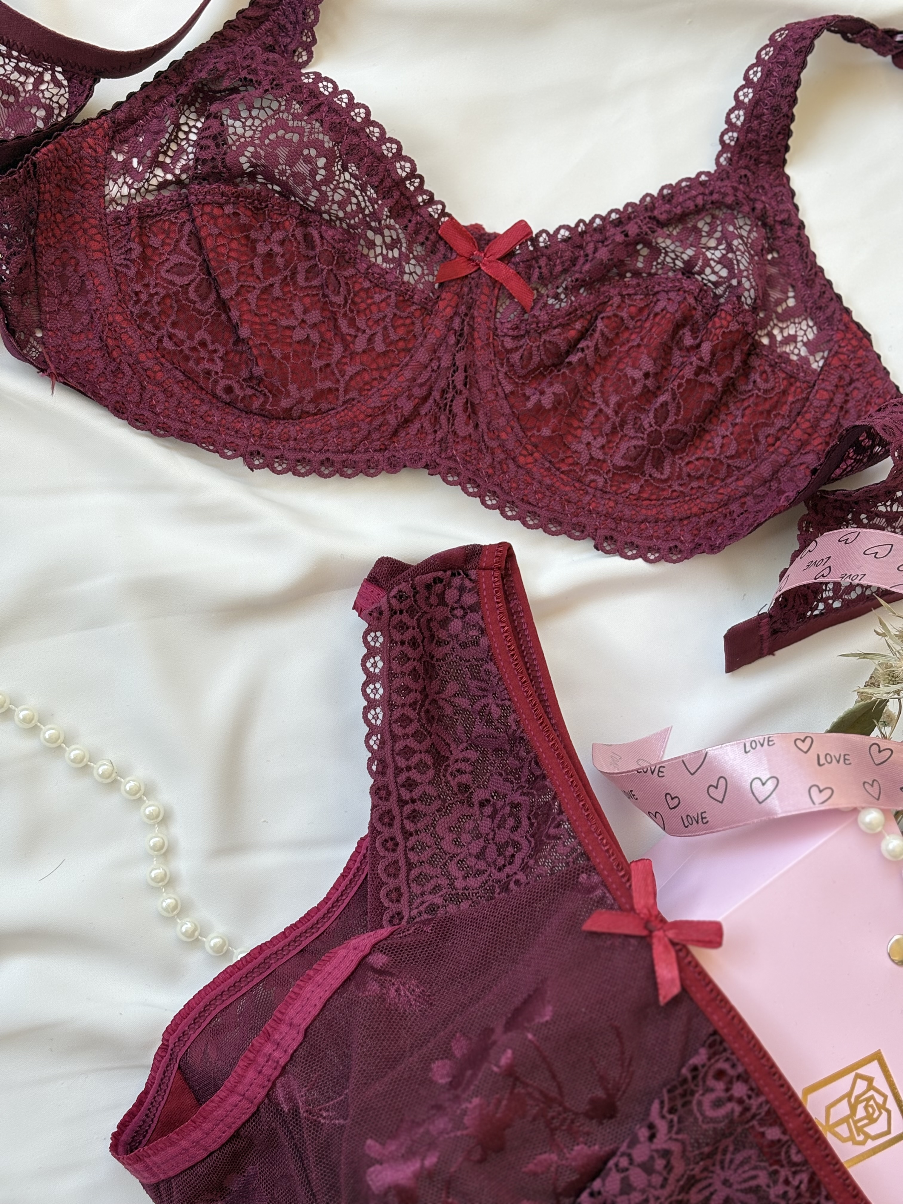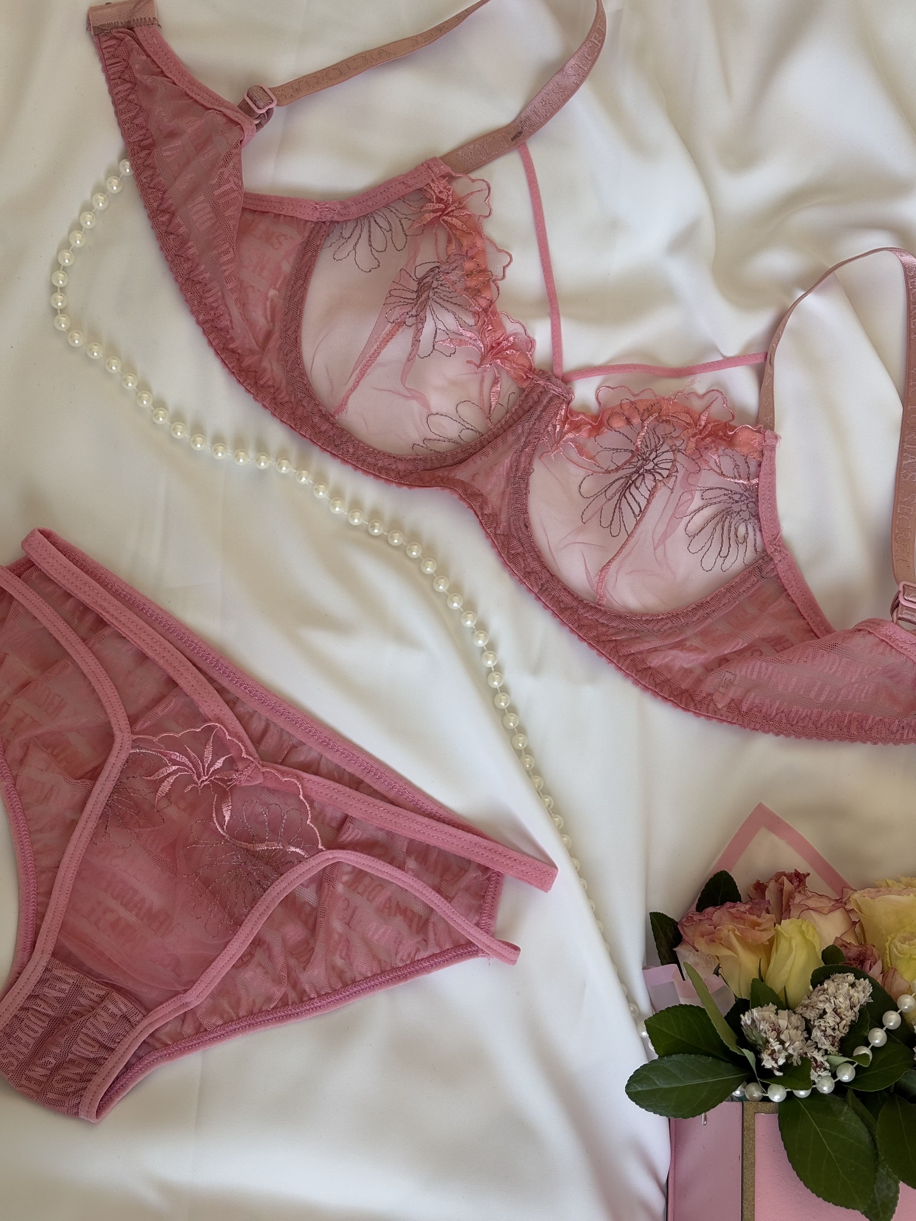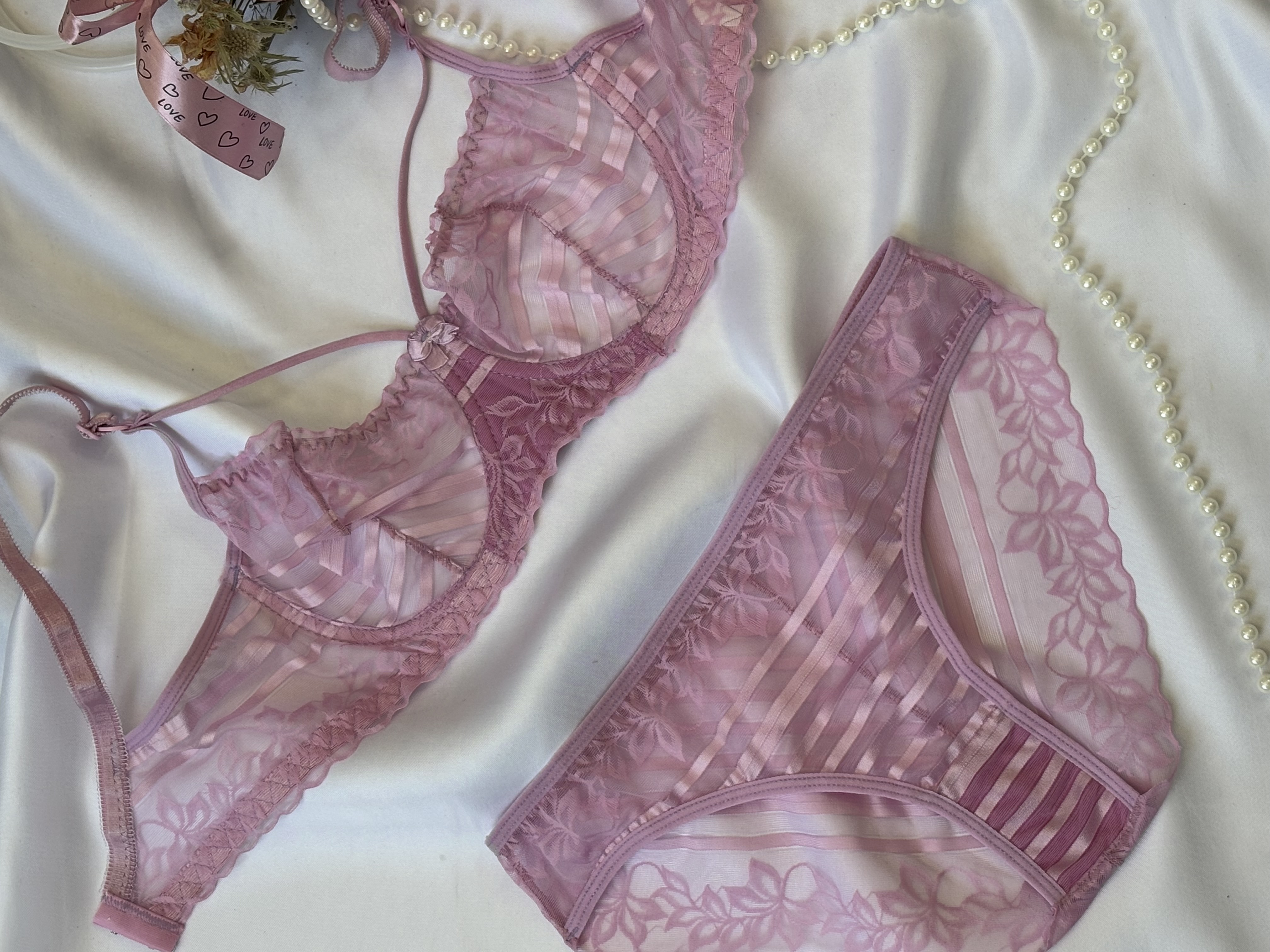 ست لباس زیر زیر فنر دار دانتل گل رز