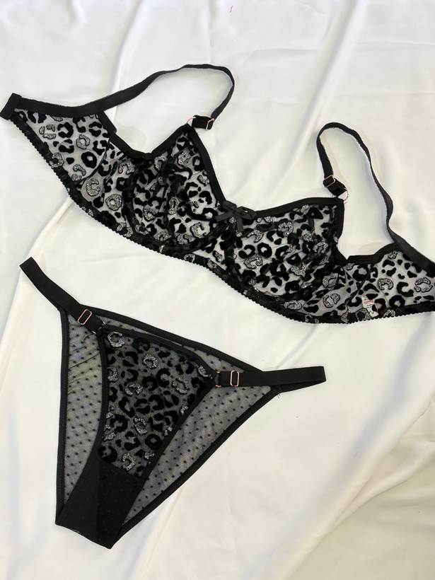 ست لباس زیر تمام تور شاین دار زیر فنردار
