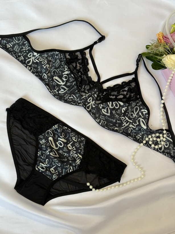 ست شورت و سوتین زیرفنر دار طرح قلب
