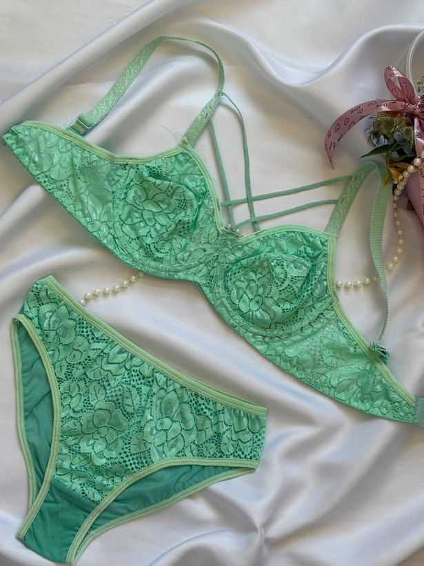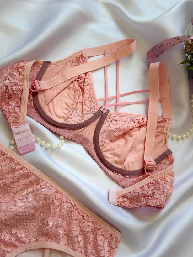 ست لباس زیر زیر فنر دار دانتل گل رز